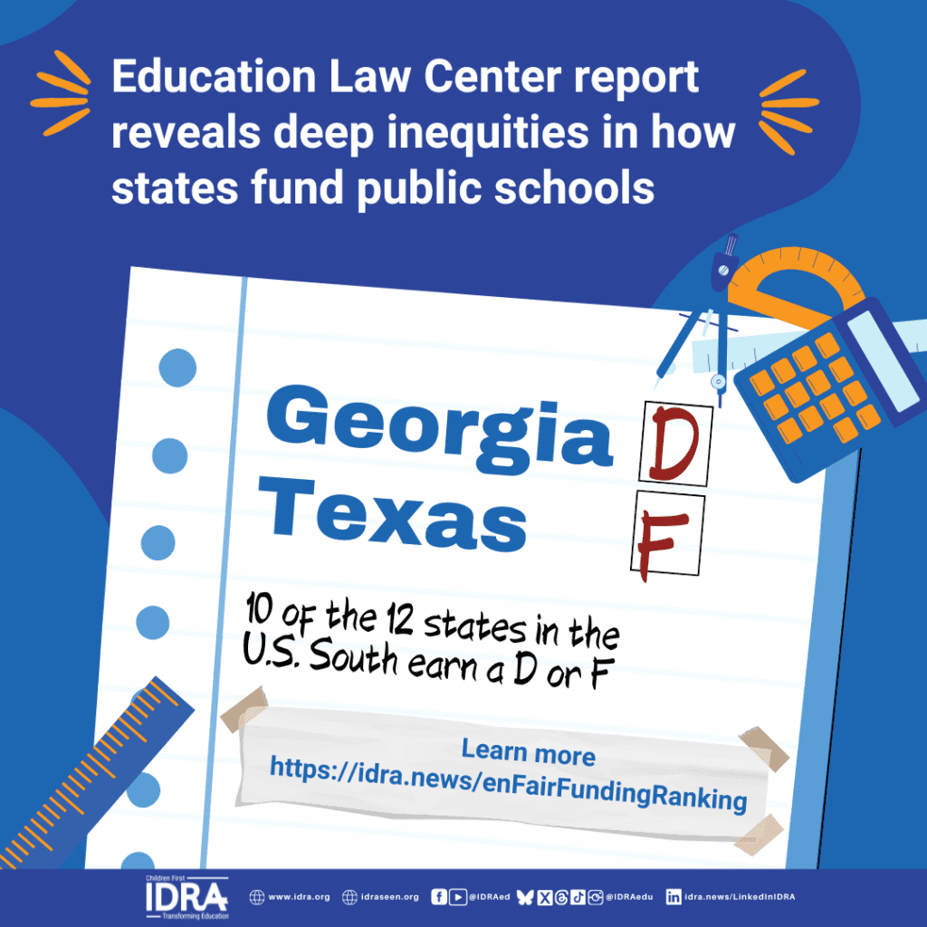(December 11, 2025) Texas received a failing grade for school funding, and Georgia was not better, scoring a D, according to a new report released by the Education Law Center. Making the Grade: How Fair is School Funding in Your State? is the latest contribution to the ELC’s decade and a half series of annual reports on school funding fairness.